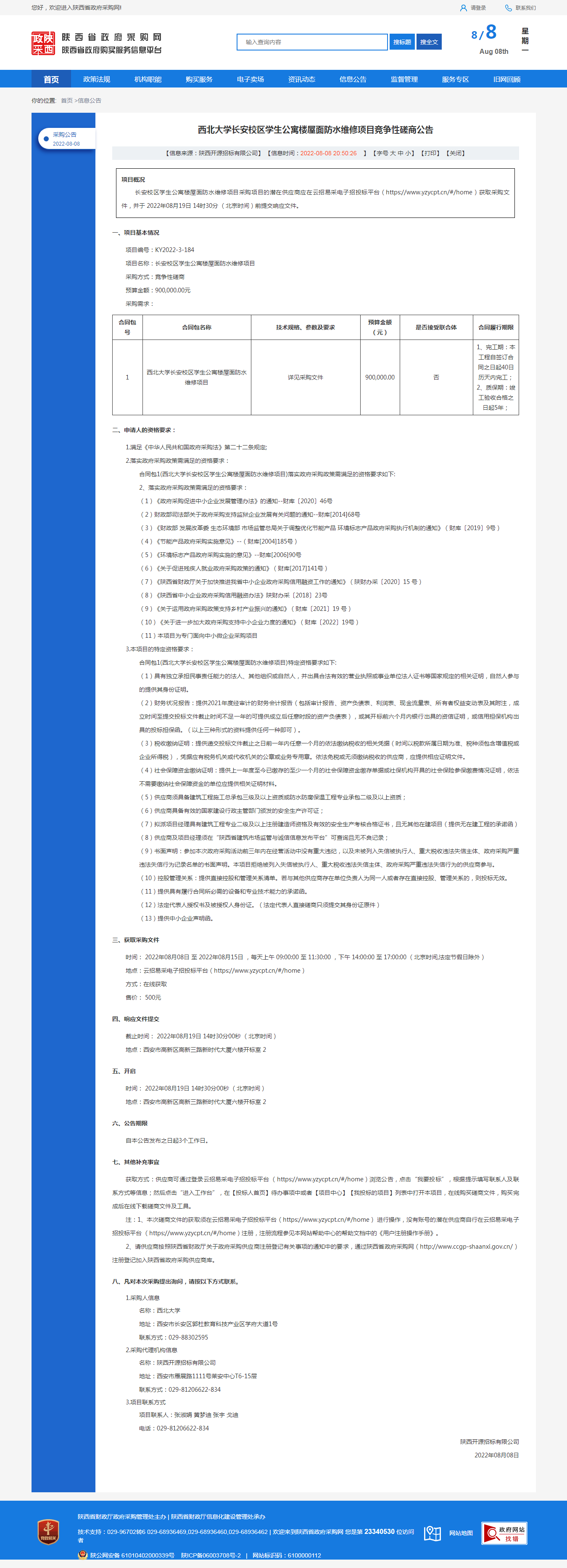星空app官网长安校区学生公寓楼屋面防水维修项目竞争性磋商公告