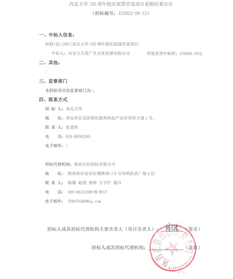 星空app官网120周年校庆氛围营造项目采购结果公告