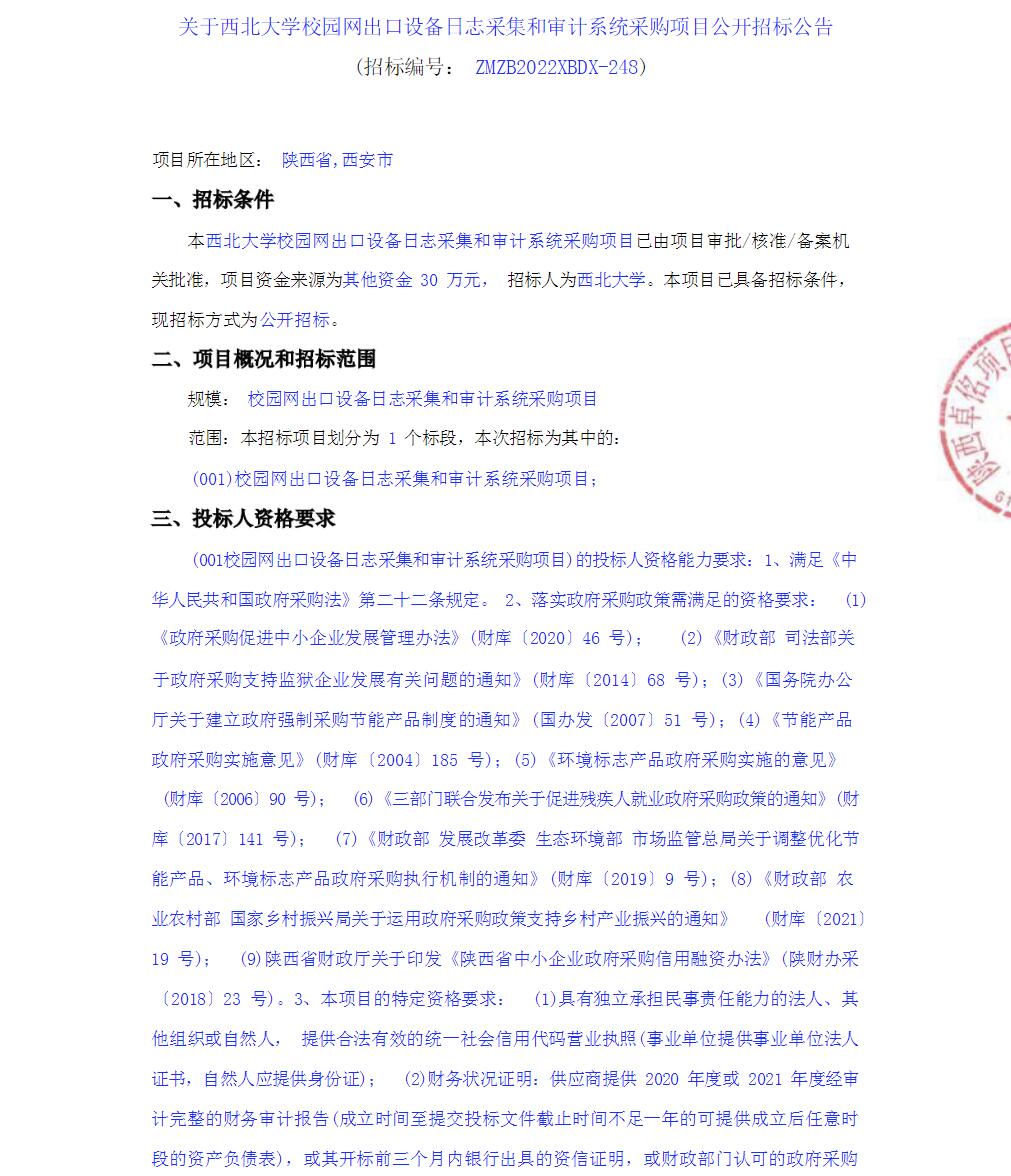 关于星空app官网校园网出口设备日志采集和审计系统采购项目公开招标公告