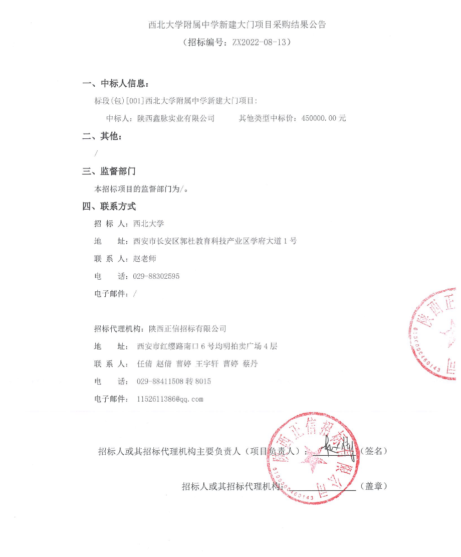 星空app官网附属中学新建大门项目采购结果公告