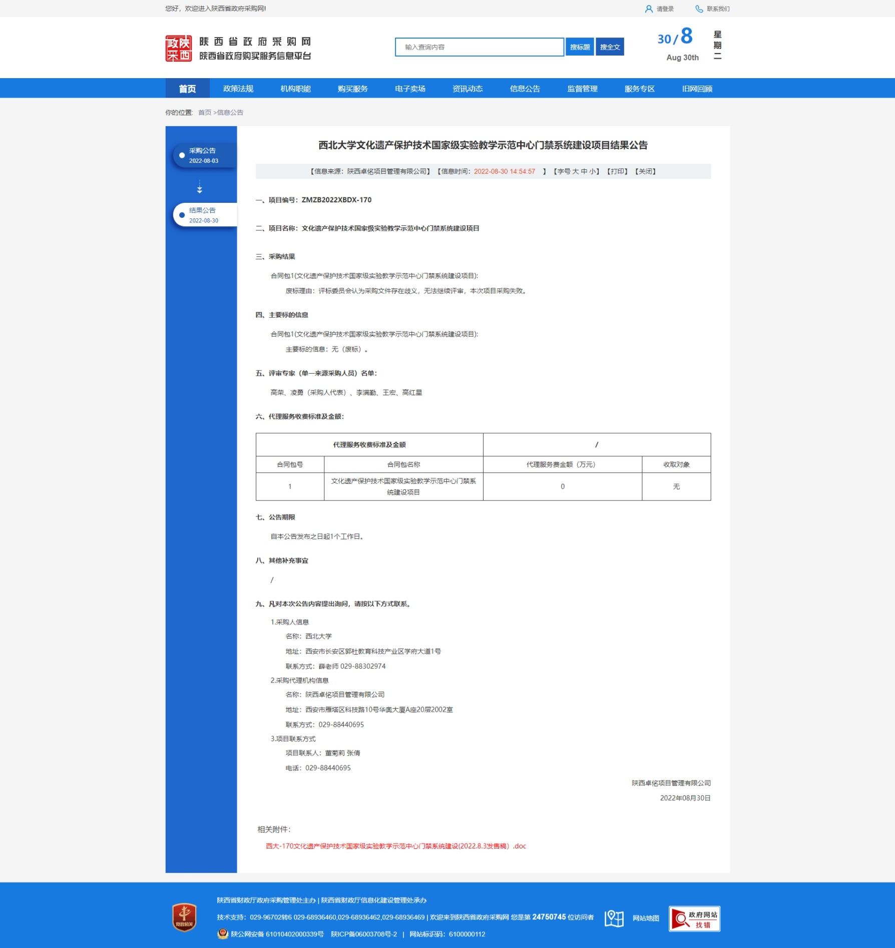 星空app官网文化遗产保护技术国家级实验教学示范中心门禁系统建设项目结果公告 作者: 编辑: 时间:2022-08-30 原公告链接:http://www.ccgp-shaanxi.gov.cn/freecms/site/shaanxi/ggxx/info/2022/8a69c59682a320a40182ed7d58d93426.html?noticeType=001006¬iceId=225c2bea-2831-11ed-9a8e-08c0eb20c666