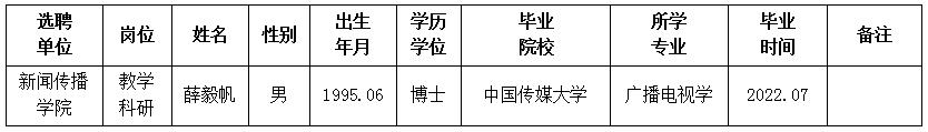 经用人单位推荐,人力资源部审查,学校教学督导及院系相关专家考核,星空app官网拟确定下列人员来校工作。本着公平、公正、公开的原则,现将本次拟选聘人员基本情况公示如下: