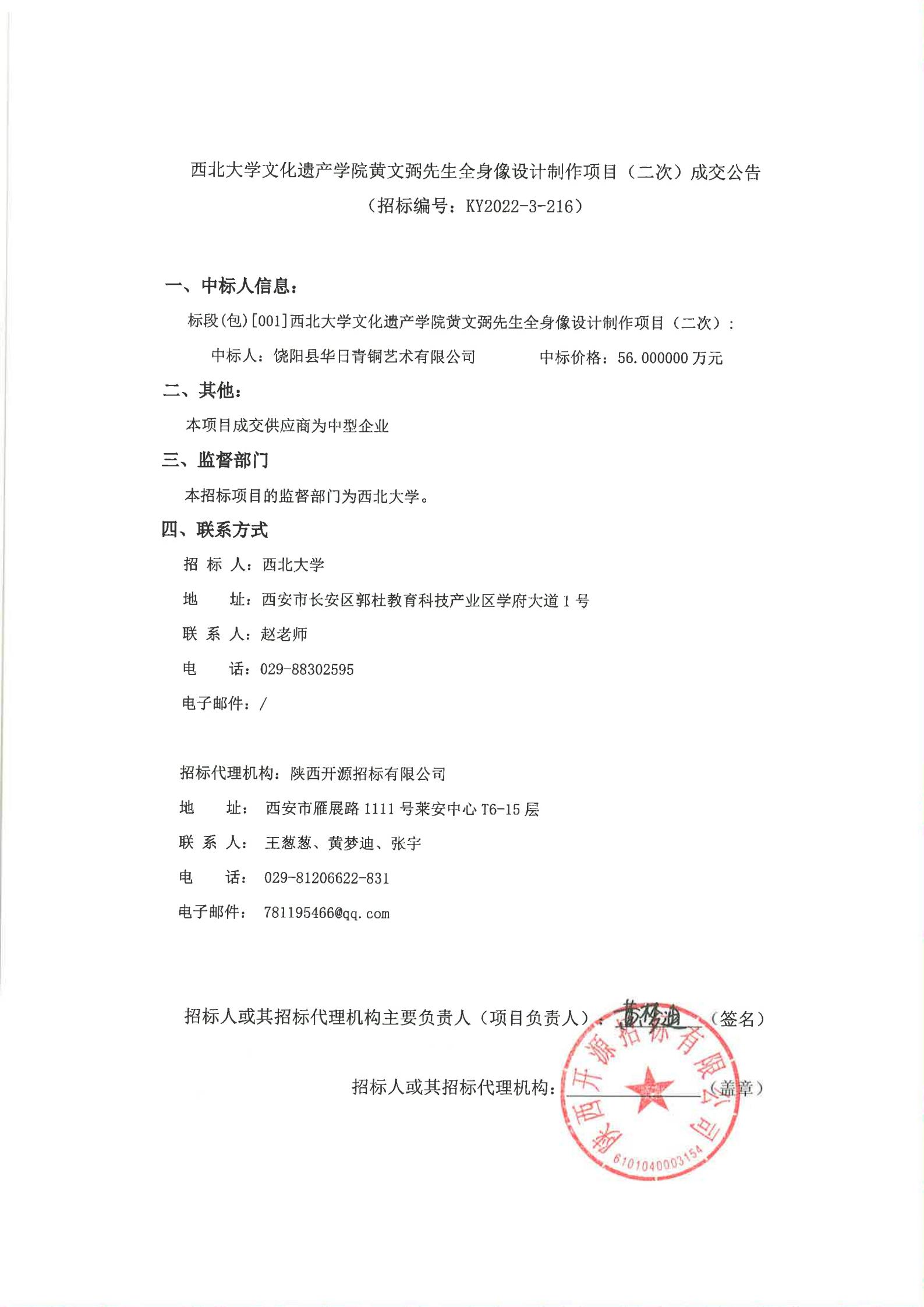星空app官网文化遗产学院黄文弼先生全身像设计制作项目(二次)成交公告