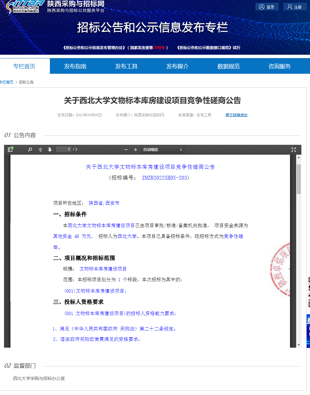 关于星空app官网文物标本库房建设项目竞争性磋商公告 作者: 编辑:采购与招标办公室 时间:2022-09-06 原公告链接:http://bulletin.sntba.com/biddingBulletin/2022-09-05/470289.html
