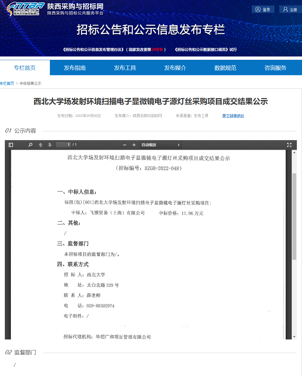星空app官网场发射环境扫描电子显微镜电子源灯丝采购项目成交结果公示 作者: 编辑:采购与招标办公室 时间:2022-09-06 原公告链接:http://bulletin.sntba.com/resultBulletin/2022-09-06/471051.html