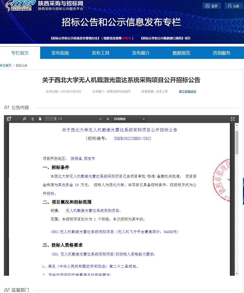 关于星空app官网无人机载激光雷达系统采购项目公开招标公告 作者: 编辑:关于星空app官网无人机载激光雷达系统采购项目公开招标公告 时间:2022-09-09 原公告链接:http://bulletin.sntba.com/biddingBulletin/2022-09-09/472755.html