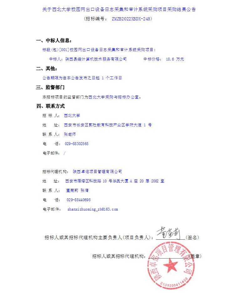 关于星空app官网校园网出口设备日志采集和审计系统采购项目采购结果公告