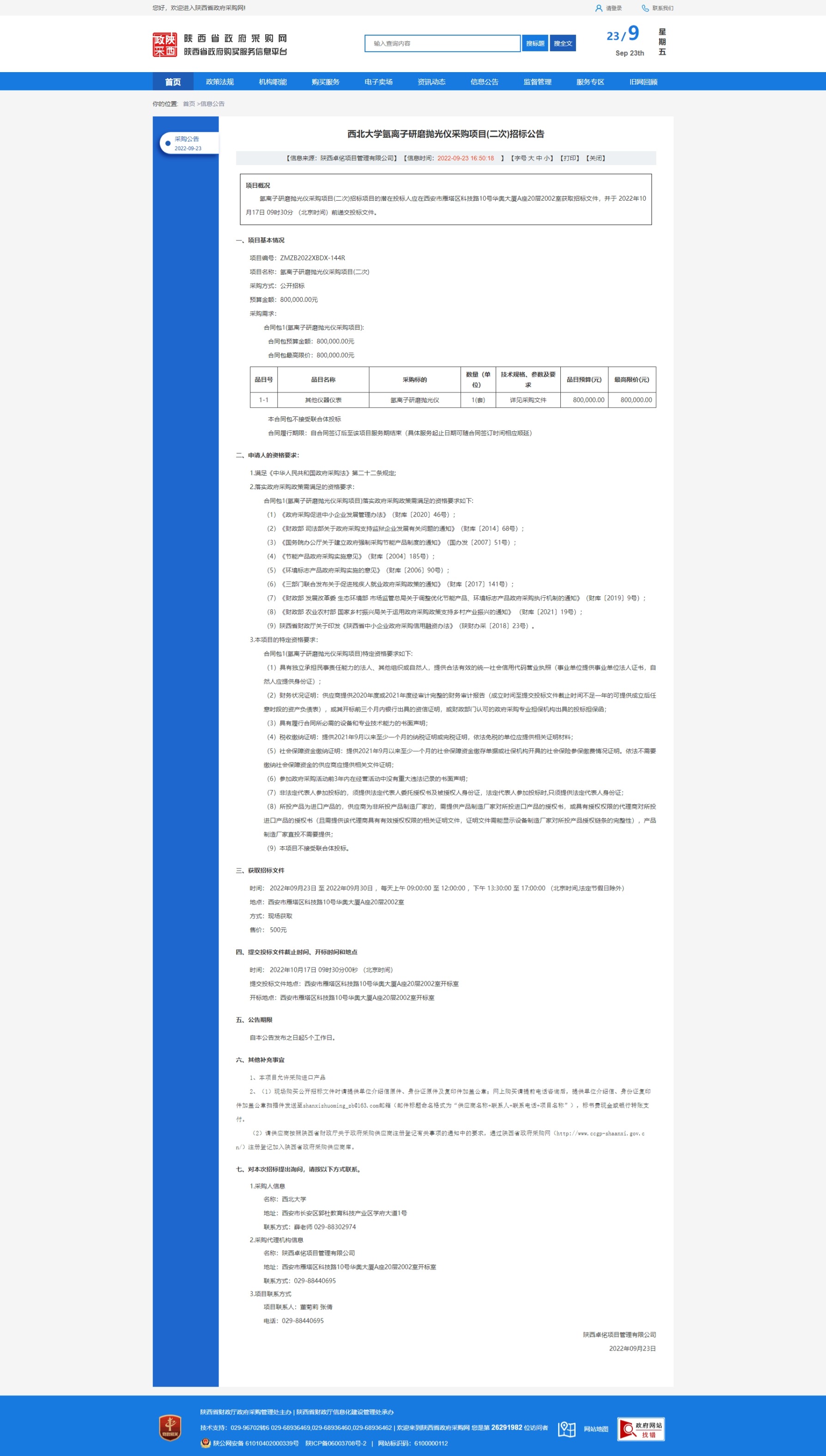 星空app官网氩离子研磨抛光仪采购项目(二次)招标公告 作者: 编辑:采购与招标办公室 时间:2022-09-23 原公告链接:http://www.ccgp-shaanxi.gov.cn/freecms/site/shaanxi/ggxx/info/2022/8a69c4a282a3244b0183697e6c6b06e5.html?noticeType=001011¬iceId=46b556db-3b1d-11ed-9a8e-08c0eb20c666