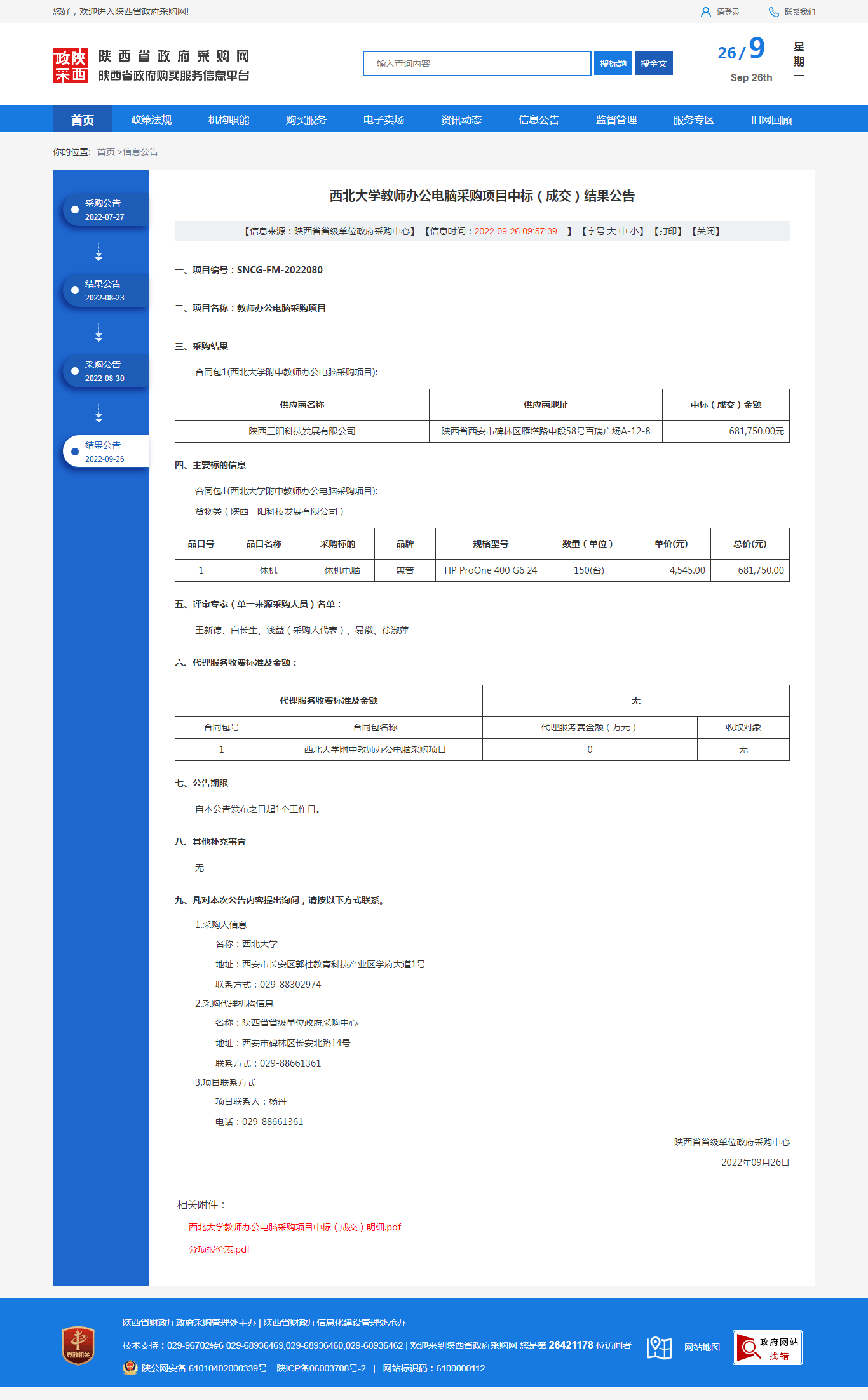 星空app官网教师办公电脑采购项目中标(成交)结果公告 作者: 编辑:采购与招标办公室 时间:2022-09-26 原公告链接:http://www.ccgp-shaanxi.gov.cn/freecms/site/shaanxi/ggxx/info/2022/8a69c59682a320a4018377493e6d3f72.html?noticeType=001021¬iceId=2261c8bd-3d3f-11ed-9a8e-08c0eb20c666