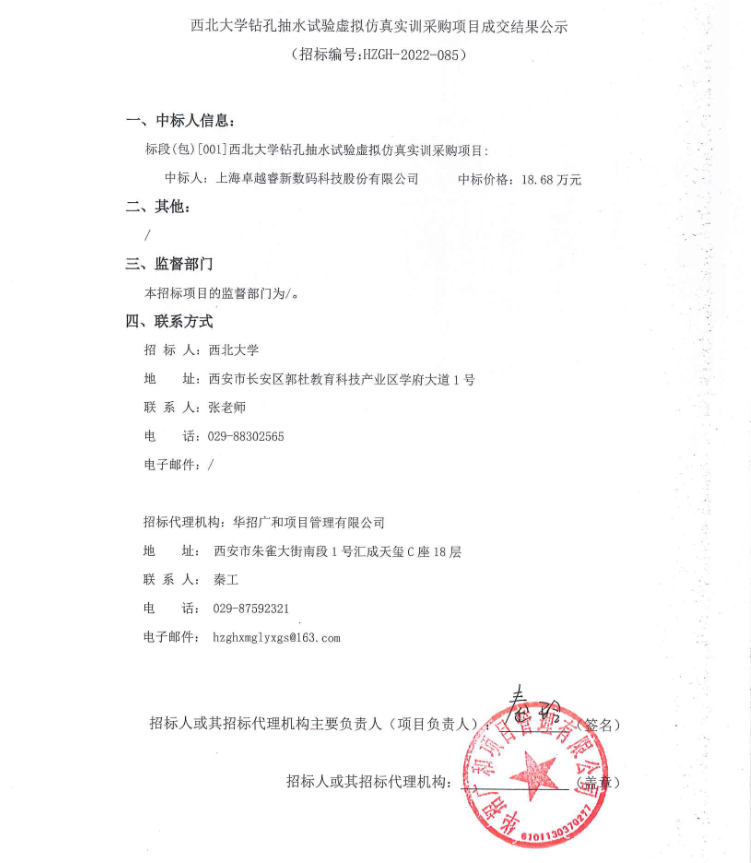 星空app官网钻孔抽水试验虚拟仿真实训采购项目成交结果公示