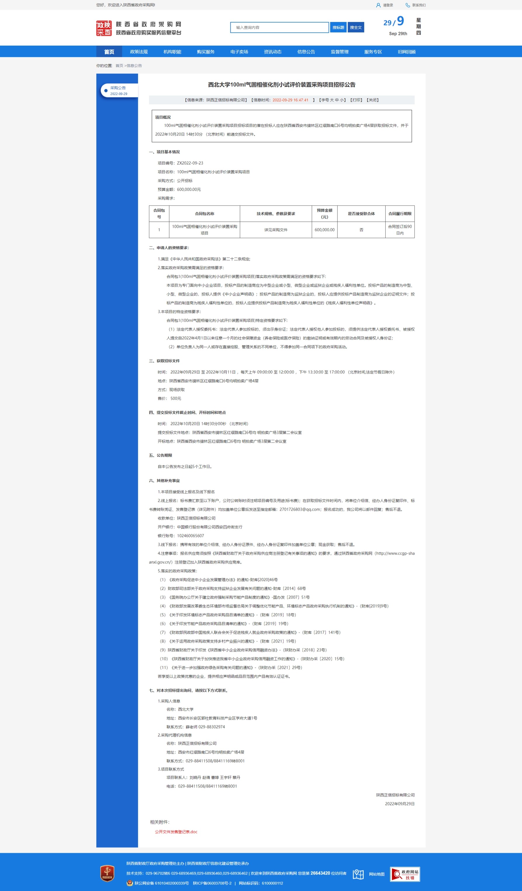 星空app官网100ml气固相催化剂小试评价装置采购项目招标公告 作者: 编辑:采购与招标办公室 时间:2022-09-29 原公告链接:http://www.ccgp-shaanxi.gov.cn/freecms/site/shaanxi/ggxx/info/2022/8a69c59682a320a40183883502d04666.html?noticeType=001011¬iceId=eace91ac-3fd3-11ed-9a8e-08c0eb20c666