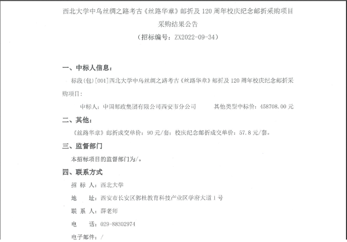 星空app官网中乌丝绸之路考古《丝路华章》邮折及120周年校庆纪念邮折采购项目采购结果公告 作者: 编辑:采购与招标办公室 时间:2022-10-09 原公告链接:http://bulletin.sntba.com/resultBulletin/2022-10-08/482720.html