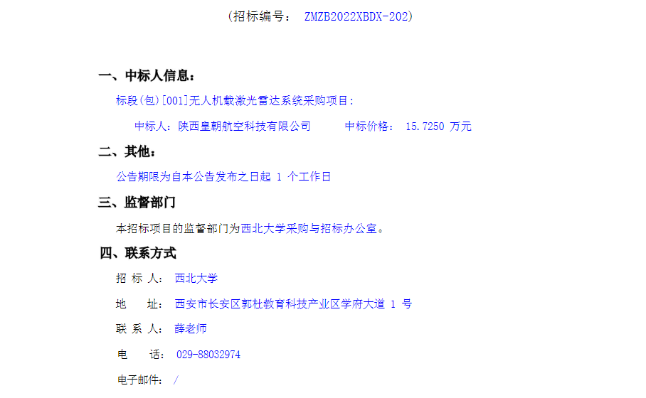 星空app官网无人机载激光雷达系统采购项目采购结果公告 作者: 编辑:采购与招标办公室 时间:2022-10-09 原公告链接:http://bulletin.sntba.com/resultBulletin/2022-10-09/483145.html