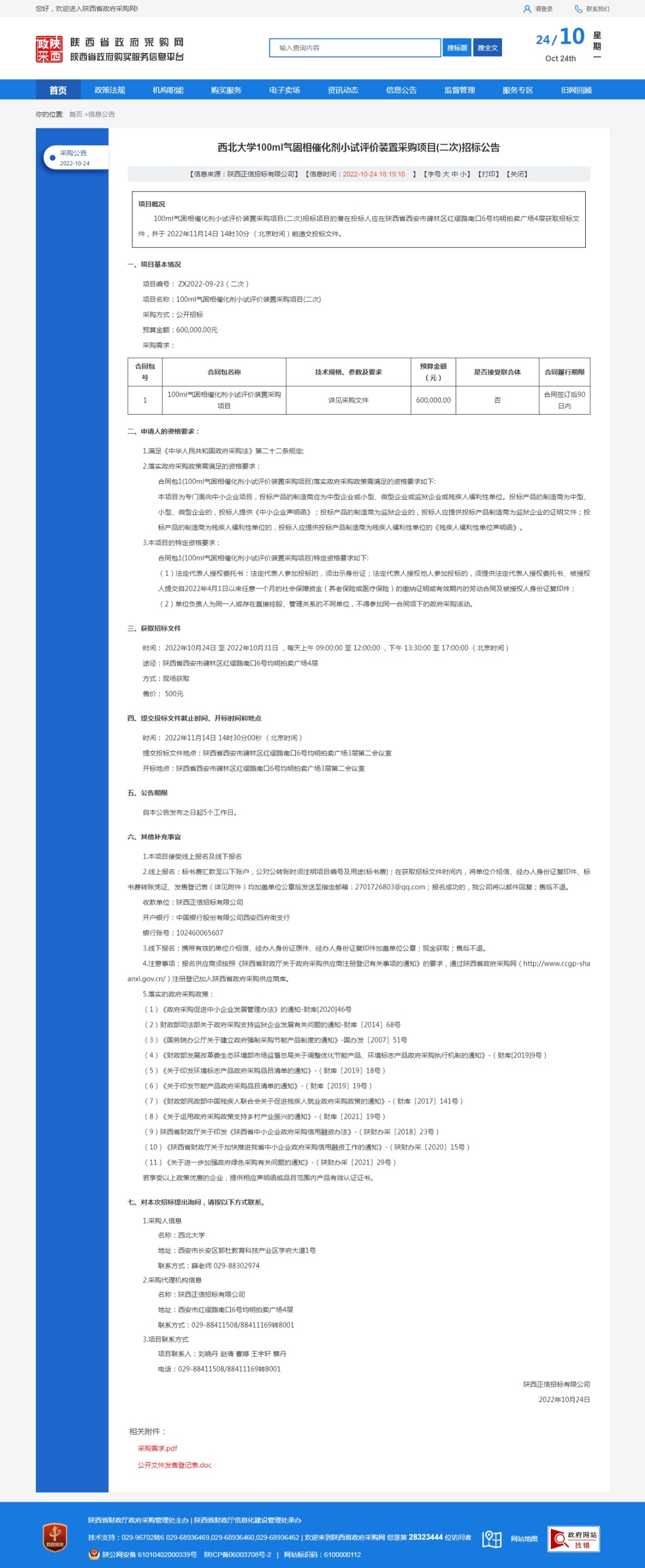 星空app官网100ml气固相催化剂小试评价装置采购项目(二次)招标公告 作者: 编辑:采购与招标办公室 时间:2022-10-24 原公告链接:http://www.ccgp-shaanxi.gov.cn/freecms/site/shaanxi/ggxx/info/2022/8a69c1948405afd90184096b5f3012f8.html?noticeType=001011¬iceId=e4678add-5385-11ed-9a8e-08c0eb20c666