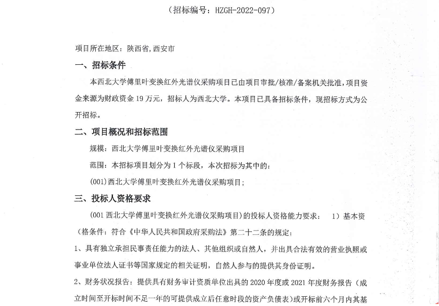星空app官网傅里叶变换红外光谱仪采购项目招标公告 作者: 编辑:采购与招标办公室 时间:2022-10-31 原公告链接:http://bulletin.sntba.com/biddingBulletin/2022-10-31/492472.html