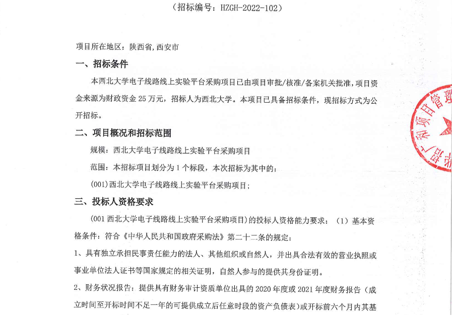 星空app官网电子线路线上实验平台采购项目公开招标公告 作者: 编辑:采购与招标办公室 时间:2022-11-04 原公告链接:http://bulletin.sntba.com/biddingBulletin/2022-11-04/494688.html