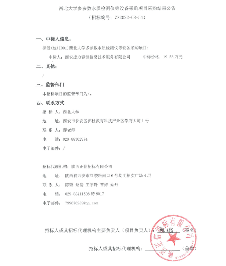 星空app官网多参数水质检测仪等设备采购项目采购结果公告