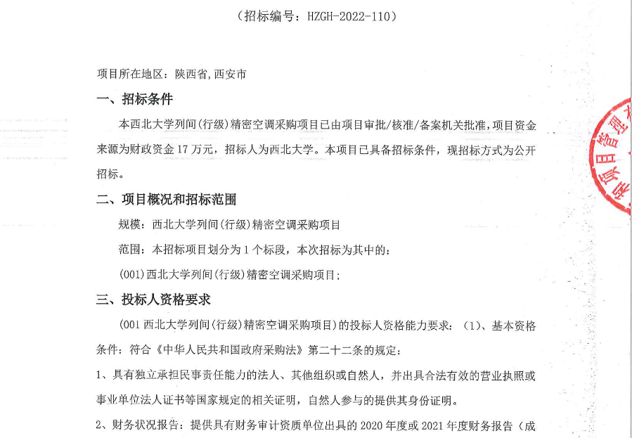星空app官网列间(行级)精密空调采购项目公开招标公告 作者: 编辑:采购与招标办公室 时间:2022-11-30 原公告链接:http://bulletin.sntba.com/biddingBulletin/2022-11-30/504885.html
