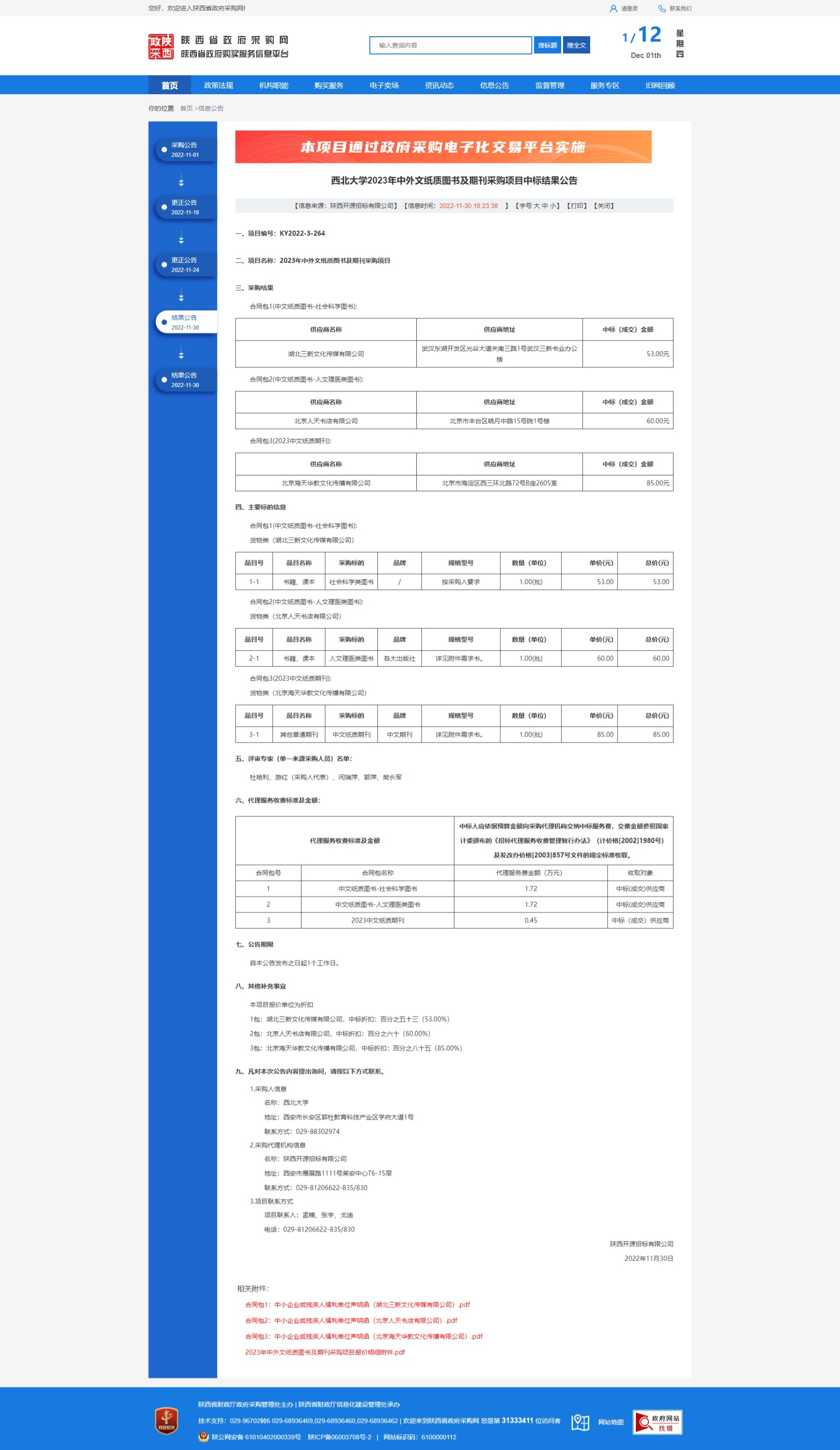 星空app官网2023年中外文纸质图书及期刊采购项目中标结果公告 作者: 编辑:采购与招标办公室 时间:2022-12-01 原公告链接:http://www.ccgp-shaanxi.gov.cn/freecms/site/shaanxi/ggxx/info/2022/8a69c0398405ac320184c6a6baf34779.html?noticeType=001021¬iceId=b9da4502-7099-11ed-9a8e-08c0eb20c666