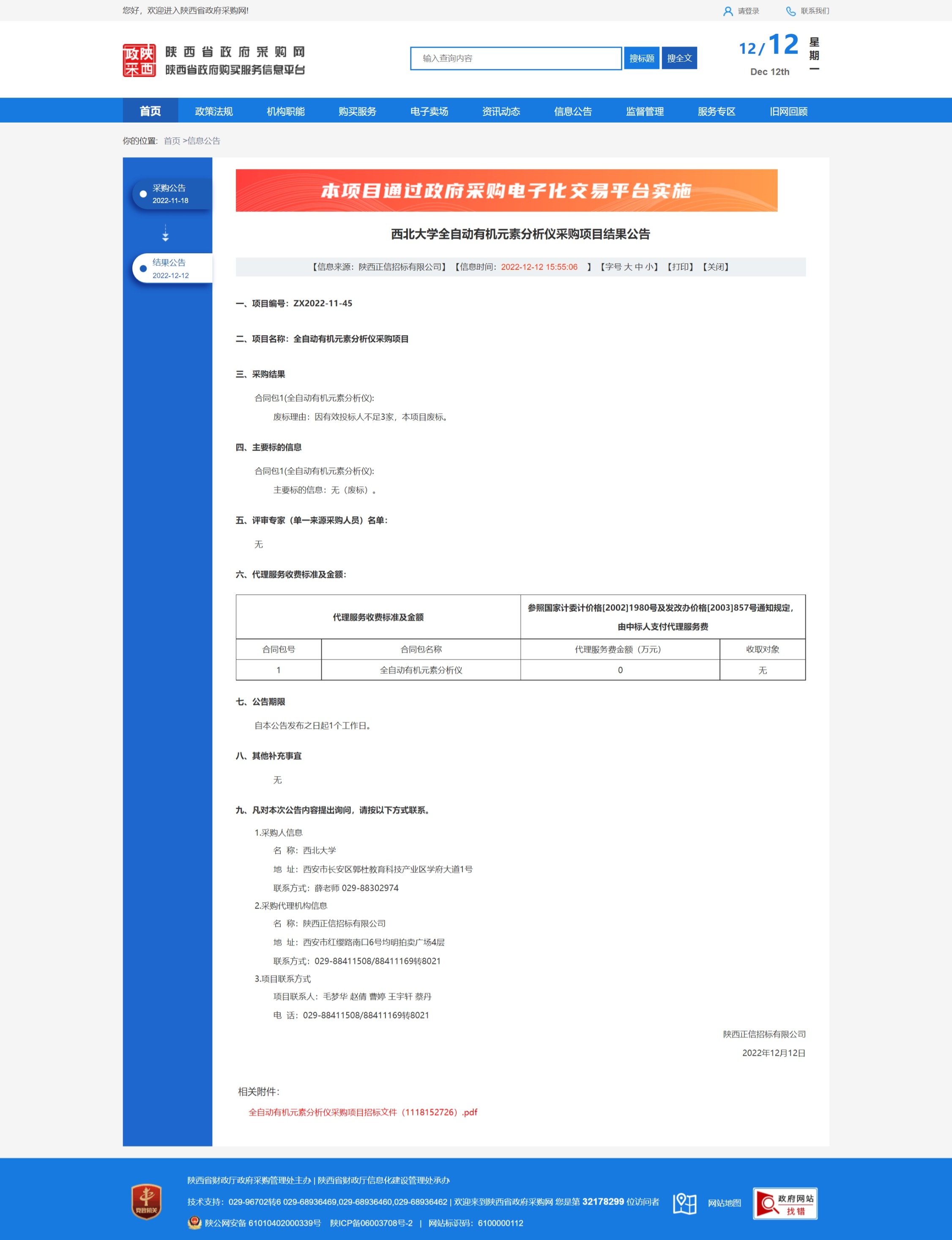 星空app官网全自动有机元素分析仪采购项目结果公告 作者: 编辑:采购与招标办公室 时间:2022-12-12 原公告链接:http://www.ccgp-shaanxi.gov.cn/freecms/site/shaanxi/ggxx/info/2022/8a69c86384ea4cb5018504dda82a5145.html?noticeType=001006¬iceId=fc98d5c7-79f2-11ed-9a8e-08c0eb20c666