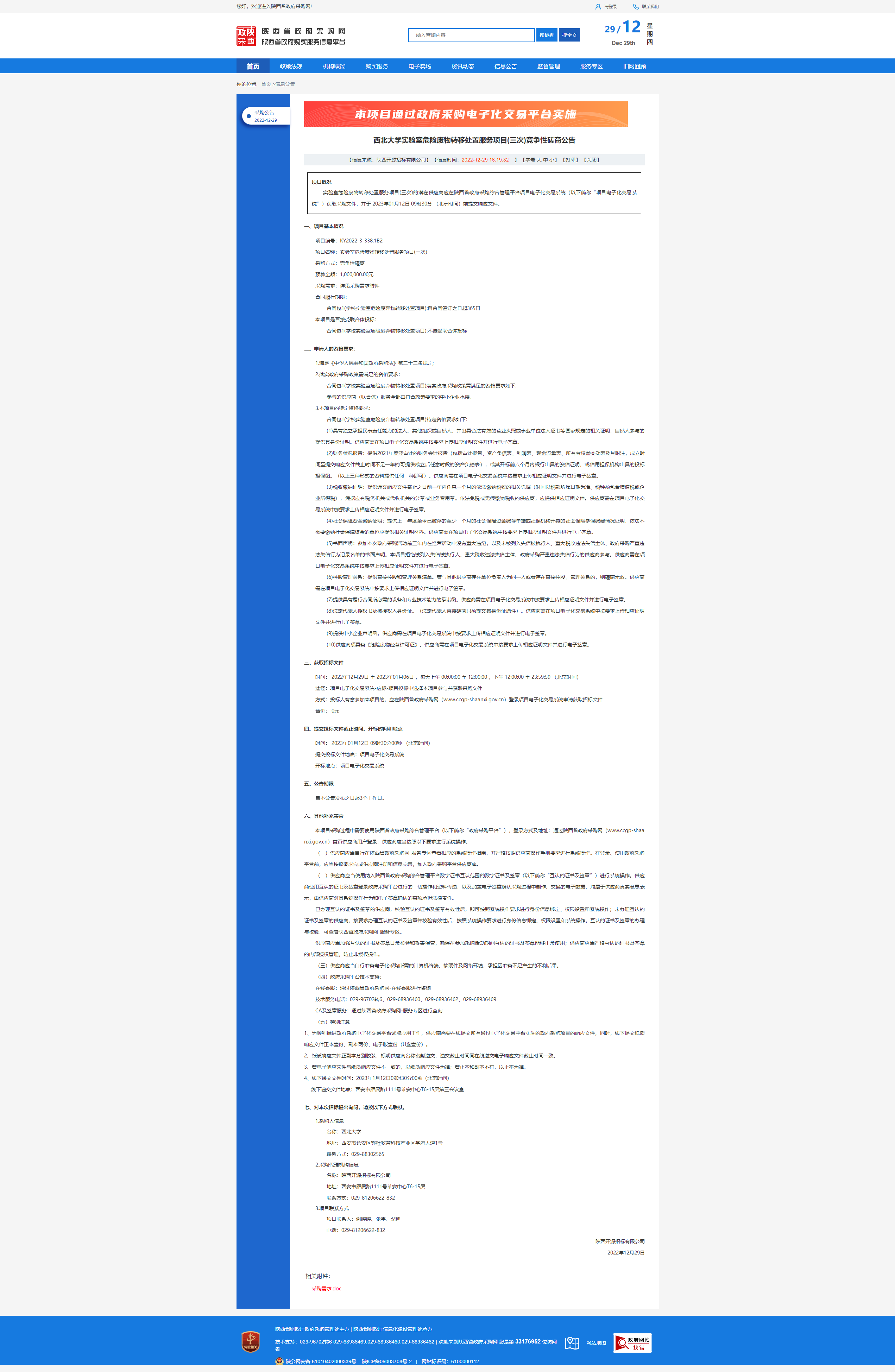 星空app官网实验室危险废物转移处置服务项目(三次)竞争性磋商公告