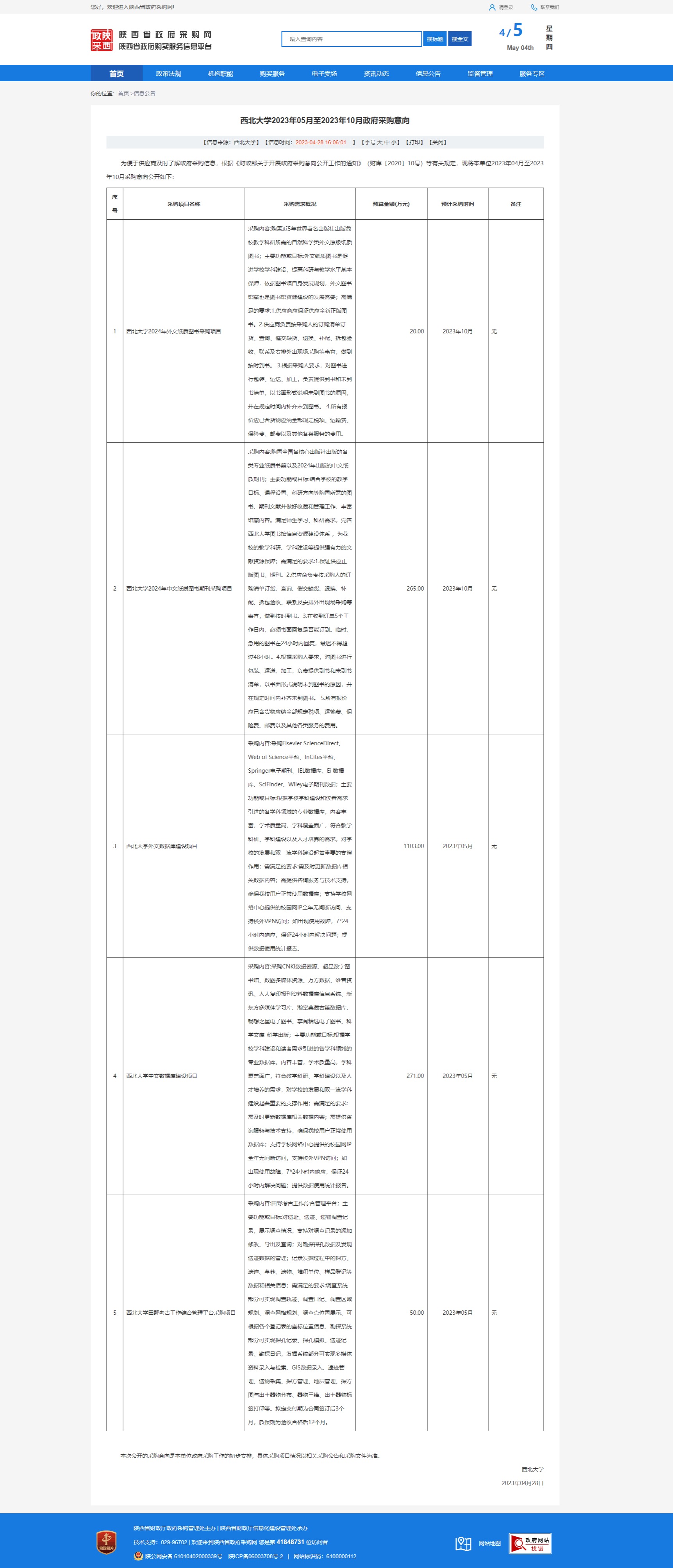 星空app官网2023年05月至2023年10月政府采购意向