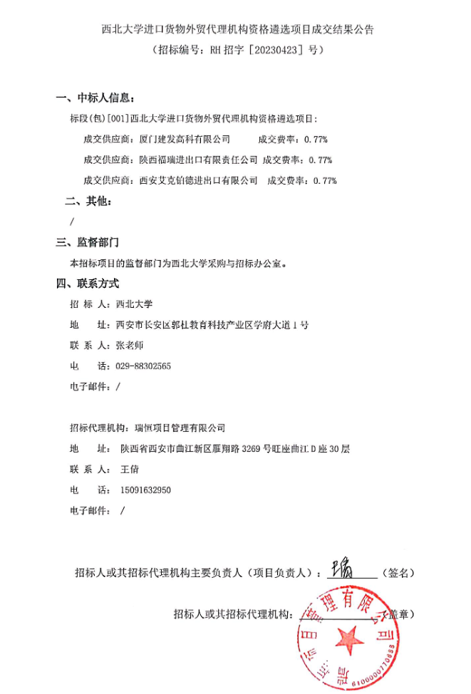 星空app官网进口货物外贸代理机构资格遴选项目成交结果公告
