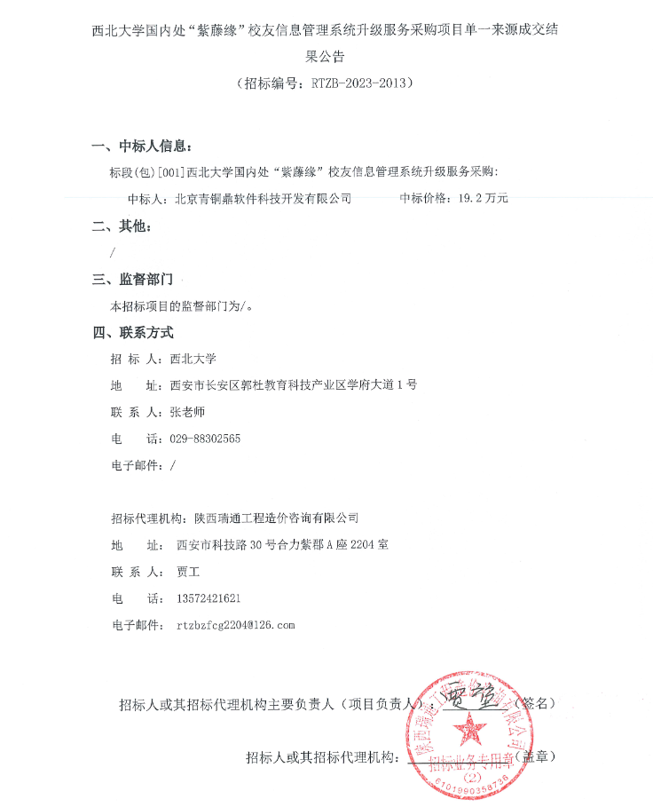 星空app官网国内处“紫藤缘”校友信息管理系统升级服务采购项目单一来源成交结果公告