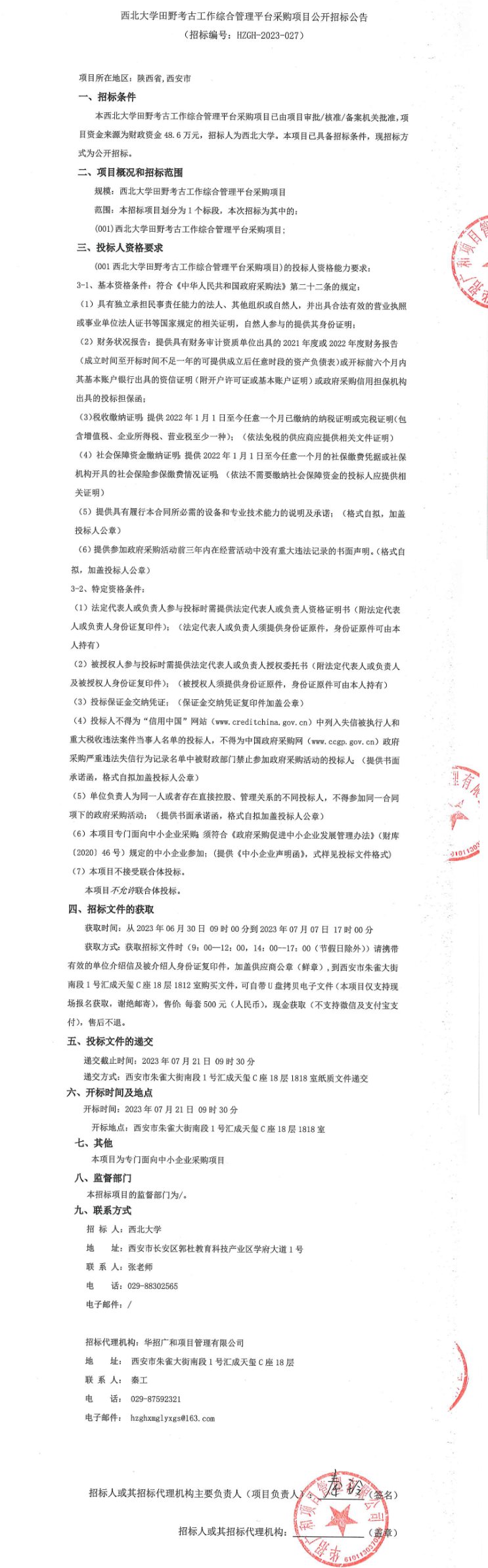 星空app官网田野考古工作综合管理平台采购项目公开招标公告