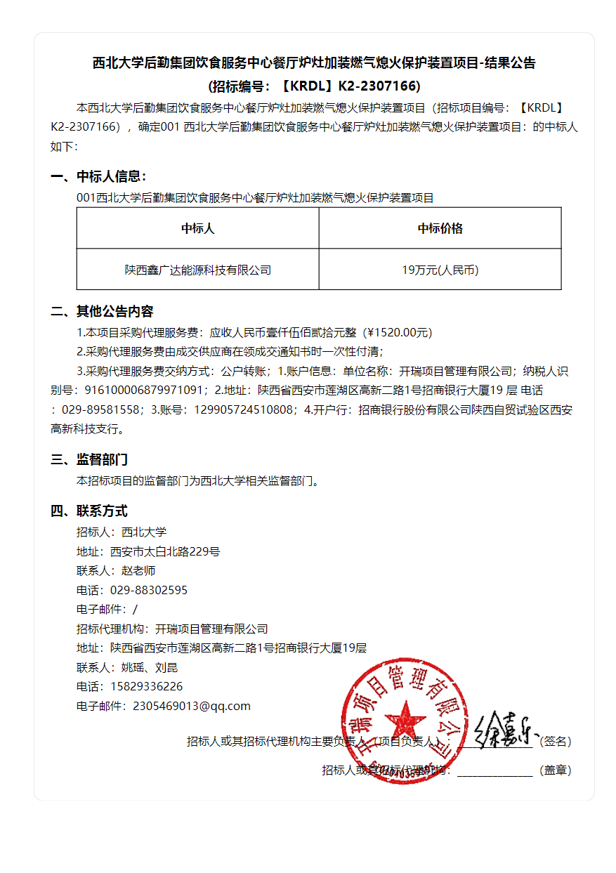 星空app官网后勤集团饮食服务中心餐厅炉灶加装燃气熄火保护装置项目-结果公告