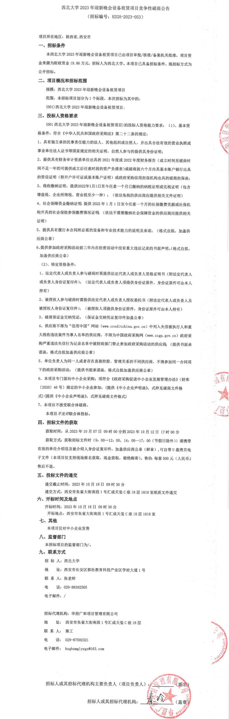 星空app官网2023年迎新晚会设备租赁项目竞争性磋商公告
