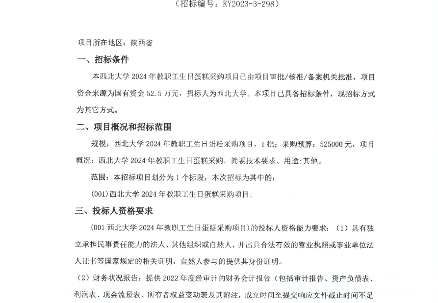 星空app官网2024年教职工生日蛋糕采购项目竞争性磋商公告 作者: 编辑:采购与招标办公室 时间:2023-11-27 原公告链接:http://bulletin.sntba.com/biddingBulletin/2023-11-27/855167.html