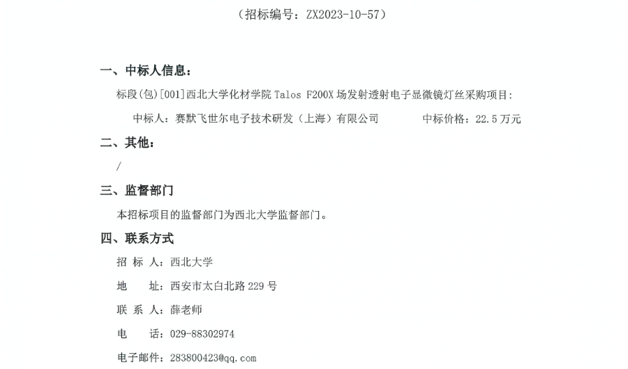 星空app官网化材学院Talos F200X场发射透射电子显微镜灯丝采购项目成交结果公示 作者: 编辑: 时间:2023-12-05 原公告链接:http://bulletin.sntba.com/resultBulletin/2023-12-05/881283.html