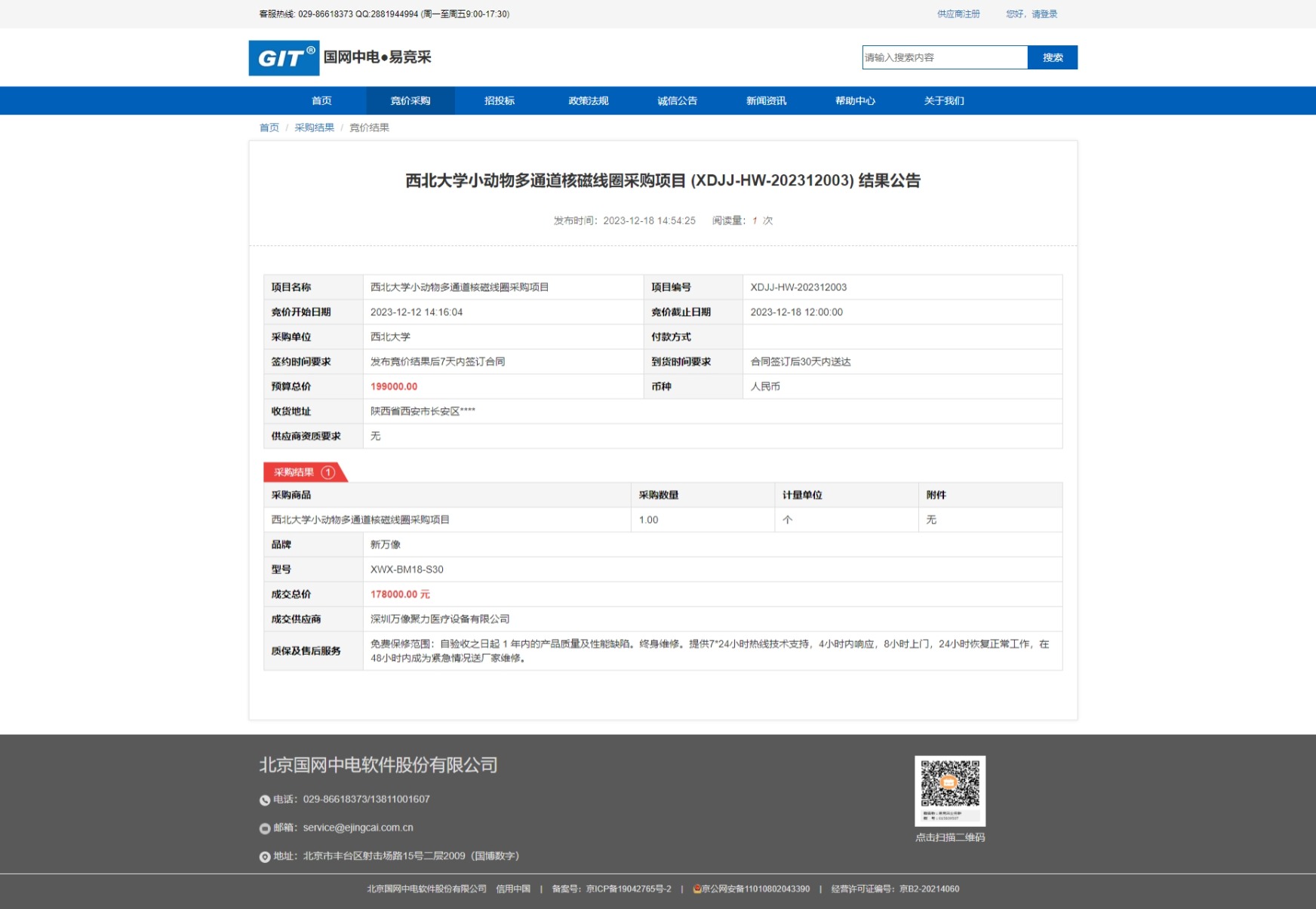 星空app官网小动物多通道核磁线圈采购项目 (XDJJ-HW-202312003) 结果公告 作者: 编辑:采购与招标办公室 时间:2023-12-18 原公告链接:https://www.ejingcai.com.cn/site/bidding/detail/7904
