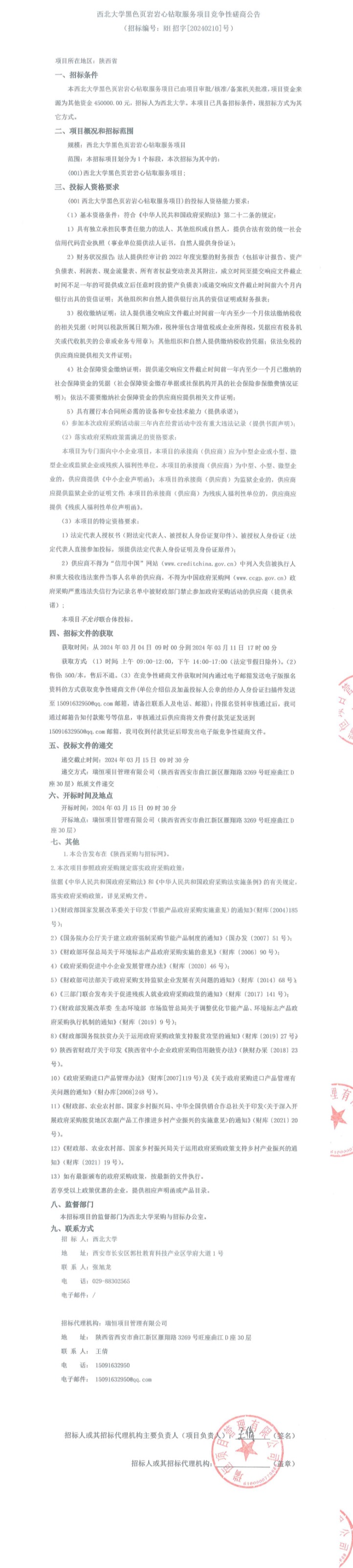 星空app官网黑色页岩岩心钻取服务项目竞争性磋商公告
