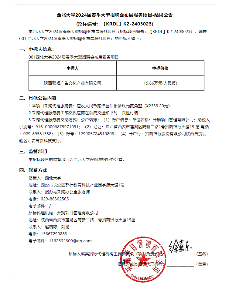 星空app官网2024届春季大型招聘会布展服务项目结果公告