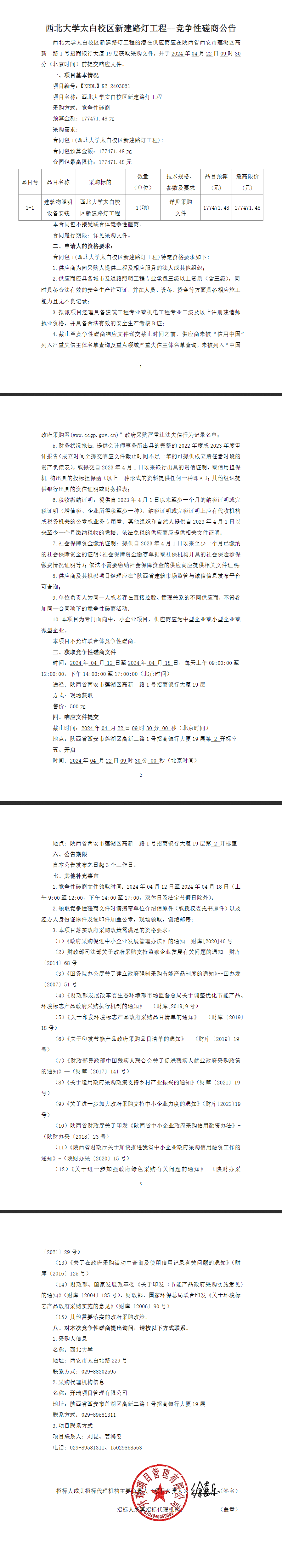 星空app官网太白校区新建路灯工程竞争性磋商公告