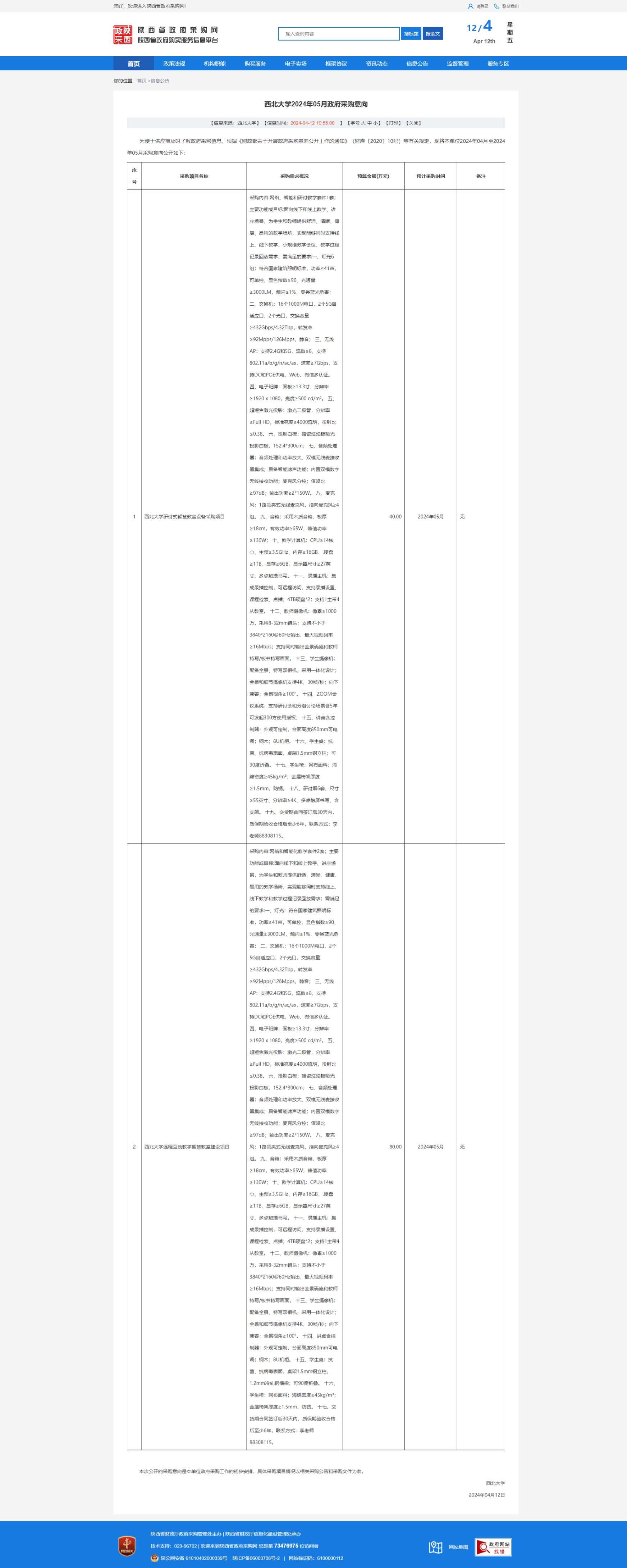 星空app官网2024年05月政府采购意向 作者: 编辑:采购与招标办公室 时间:2024-04-12 原公告链接:https://www.ccgp-shaanxi.gov.cn/freecms/site/shaanxi/ggxx/info/2024/8a69c67a8ebac77d018ed0101b371004.html?noticeType=59¬iceId=3ac65597-f879-11ee-b8b6-08c0eb20c666