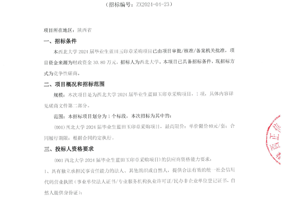 星空app官网2024届毕业生蓝田玉印章采购项目竞争性磋商公告 作者: 编辑:采购与招标办公室 时间:2024-04-16 原公告链接:http://bulletin.sntba.com/biddingBulletin/2024-04-16/1309683.html