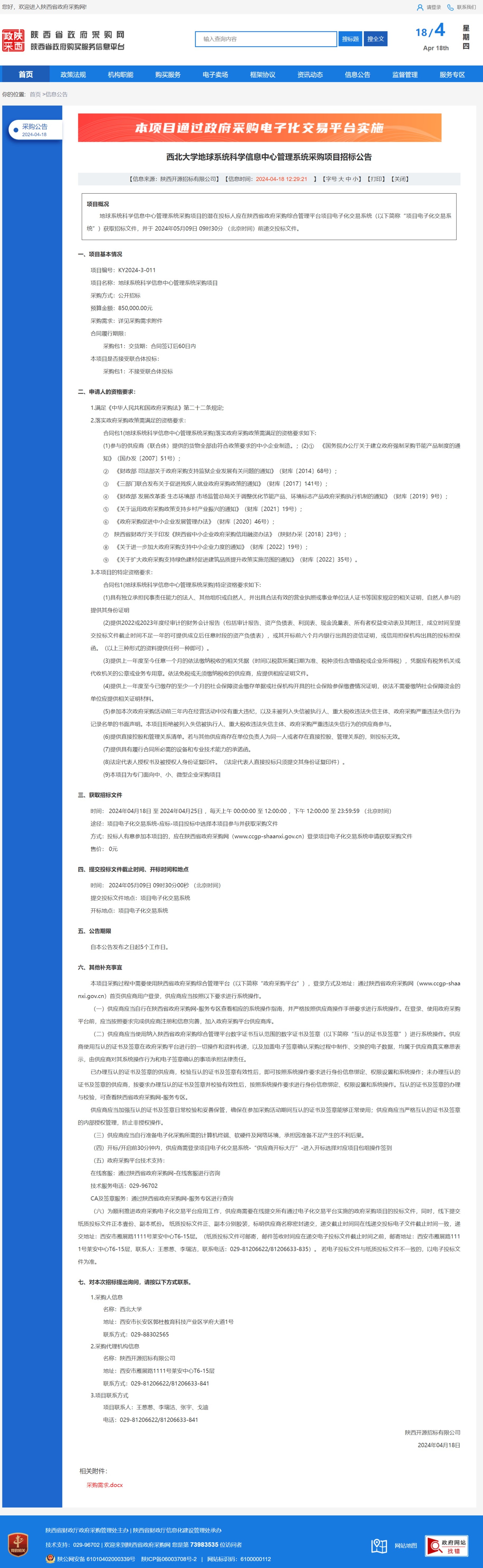 星空app官网地球系统科学信息中心管理系统采购项目招标公告