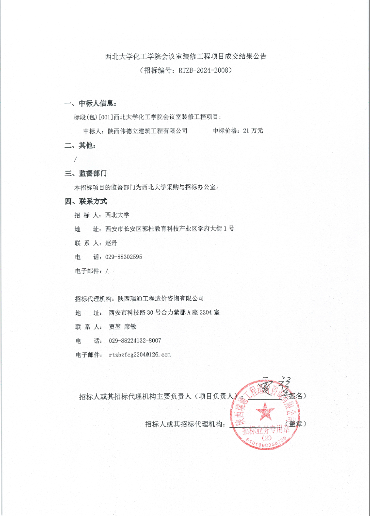 星空app官网化工学院会议室装修工程项目成交结果公告