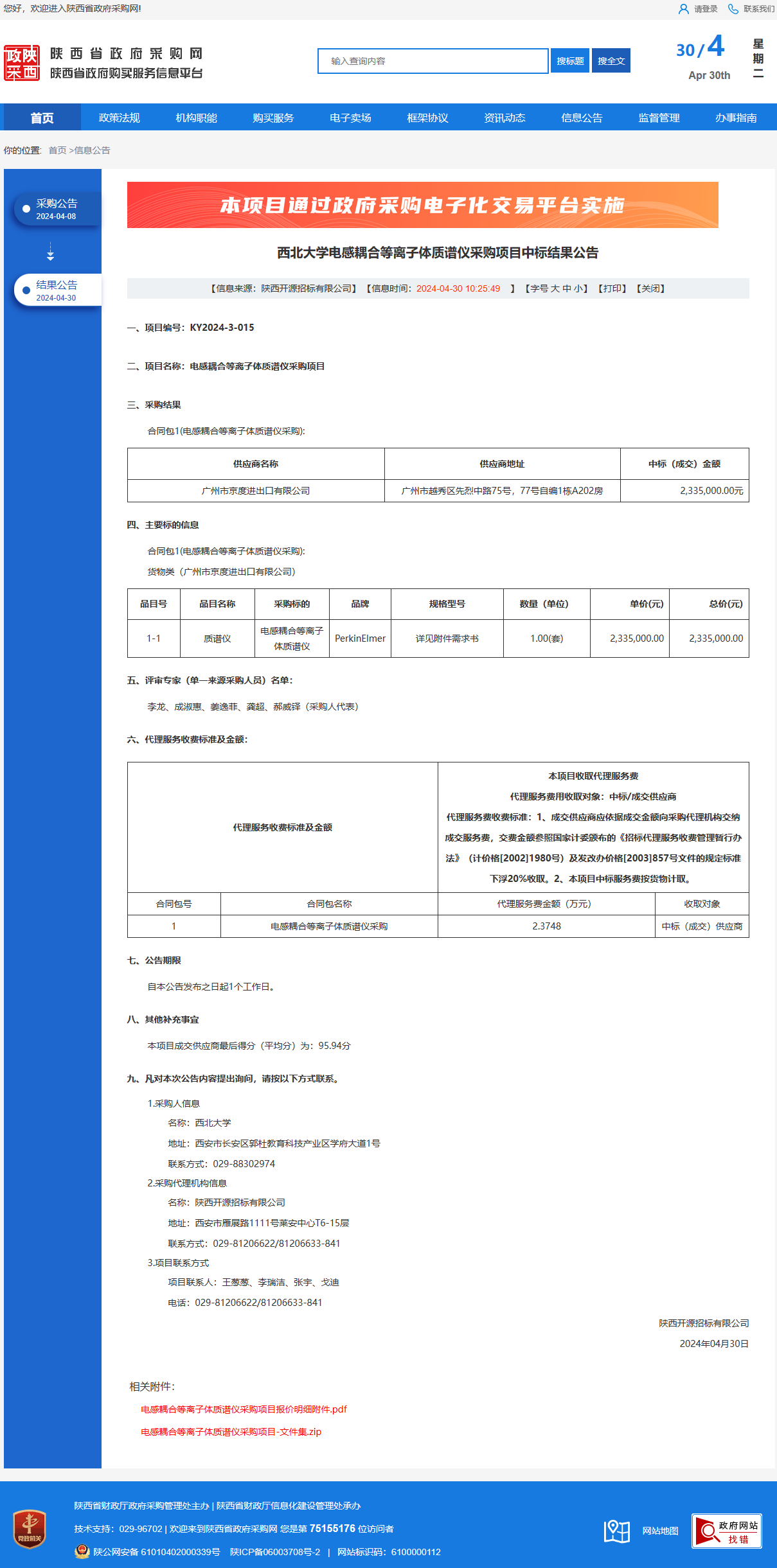 星空app官网电感耦合等离子体质谱仪采购项目中标结果公告