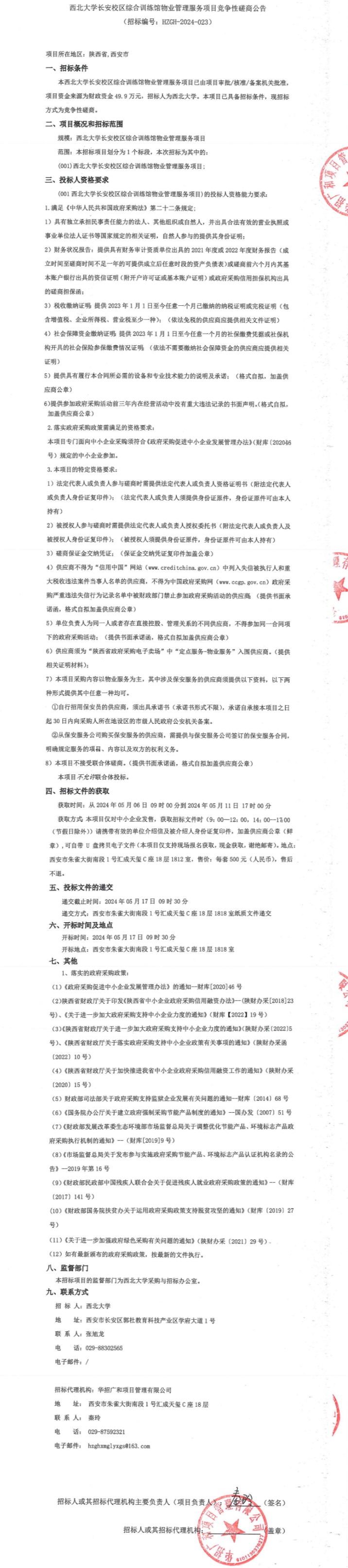 星空app官网长安校区综合训练馆物业管理服务项目竞争性磋商公告