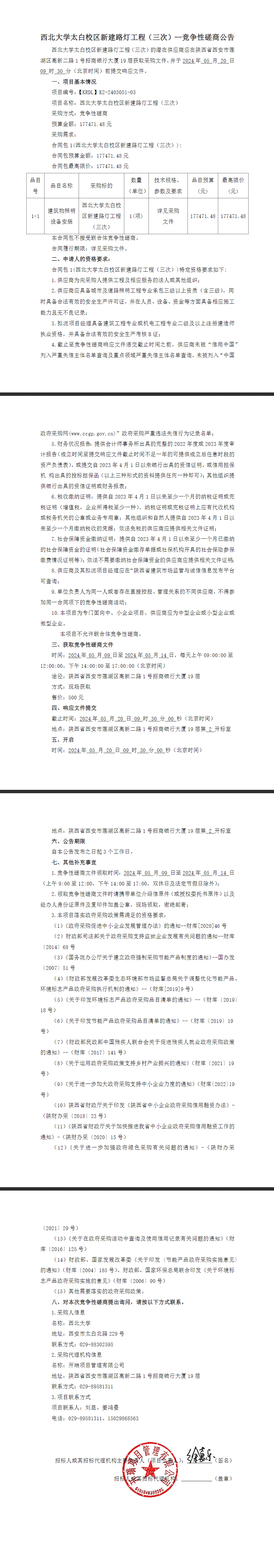 星空app官网太白校区新建路灯工程(三次)竞争性磋商公告