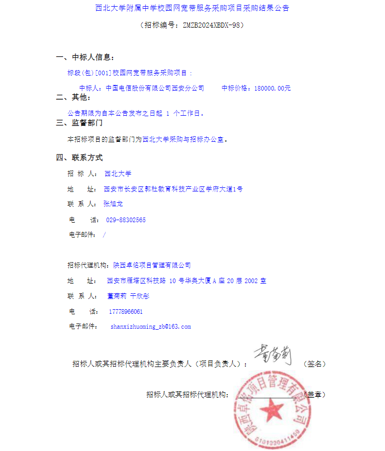 星空app官网附属中学校园网宽带服务采购项目采购结果公告