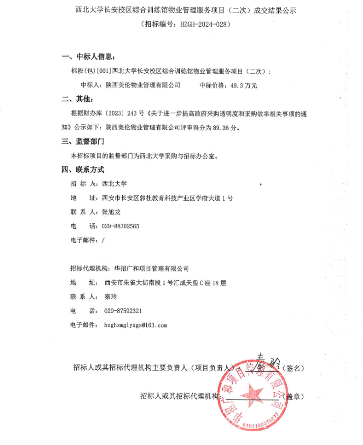星空app官网长安校区综合训练馆物业管理服务项目(二次)成交结果公示