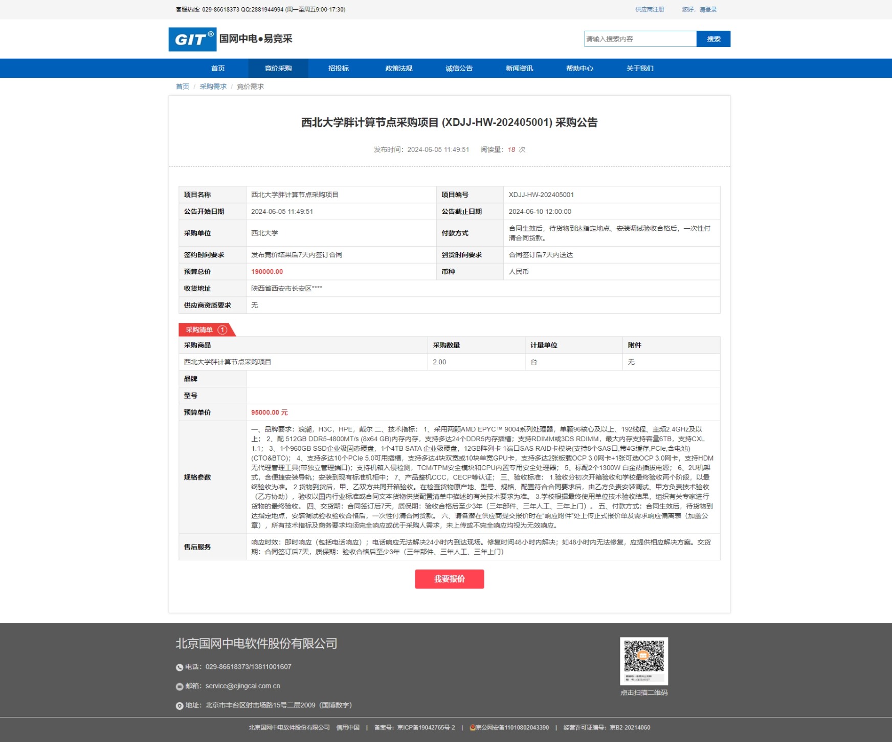 星空app官网胖计算节点采购项目 (XDJJ-HW-202405001) 采购公告 作者: 编辑:采购与招标办公室 时间:2024-06-05 原公告链接:https://www.ejingcai.com.cn/site/bidding/detail/10763
