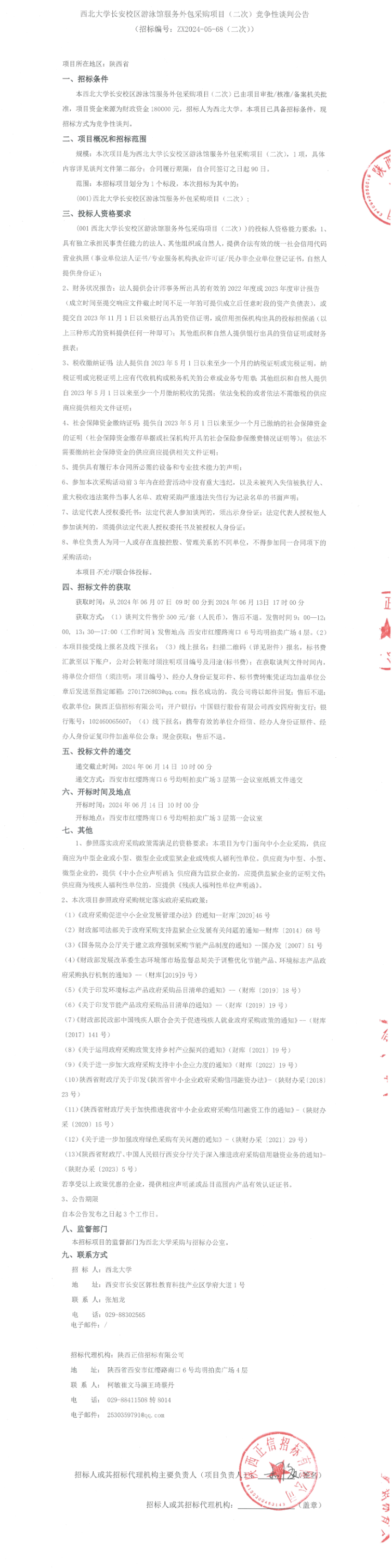 星空app官网长安校区游泳馆服务外包采购项目(二次)竞争性谈判公告