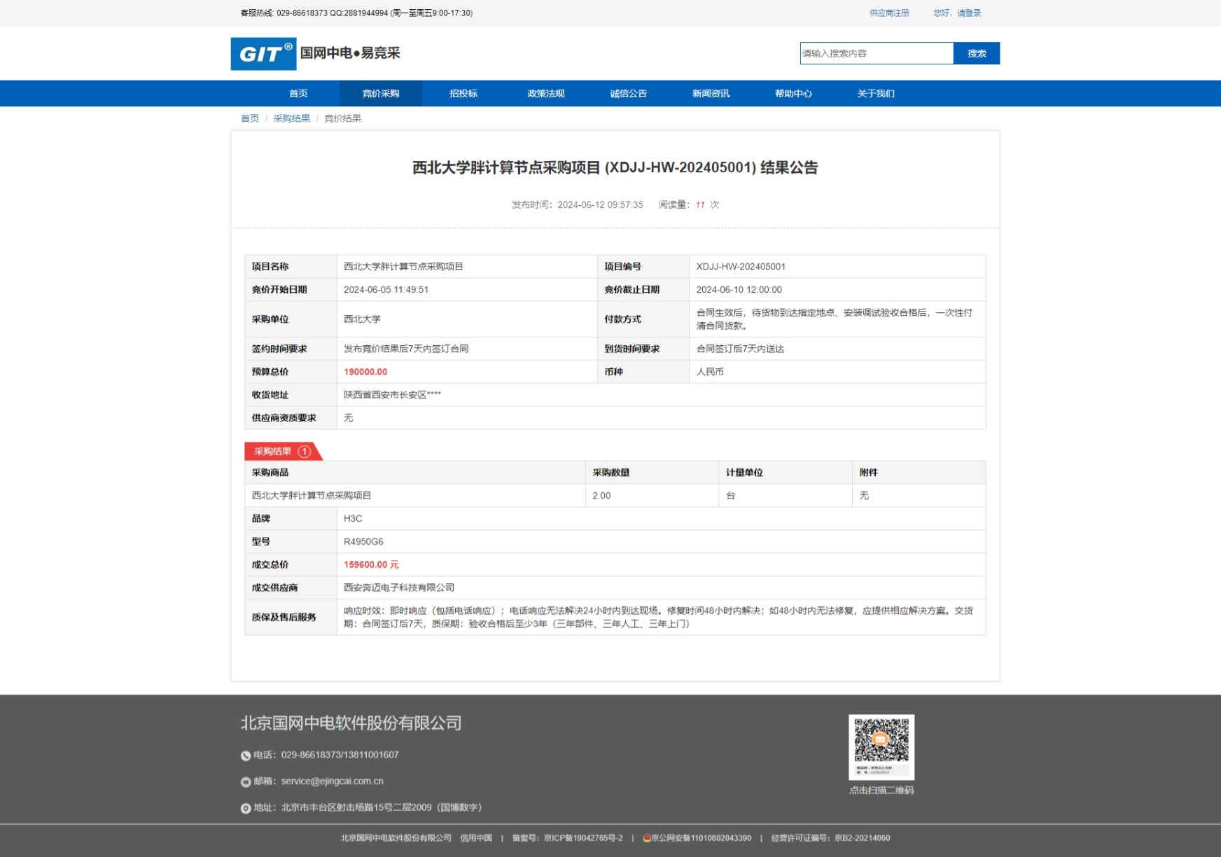 星空app官网胖计算节点采购项目 (XDJJ-HW-202405001)竞价结果公告 作者: 编辑:采购与招标办公室 时间:2024-06-12 原公告链接:https://www.ejingcai.com.cn/site/bidding/detail/10930