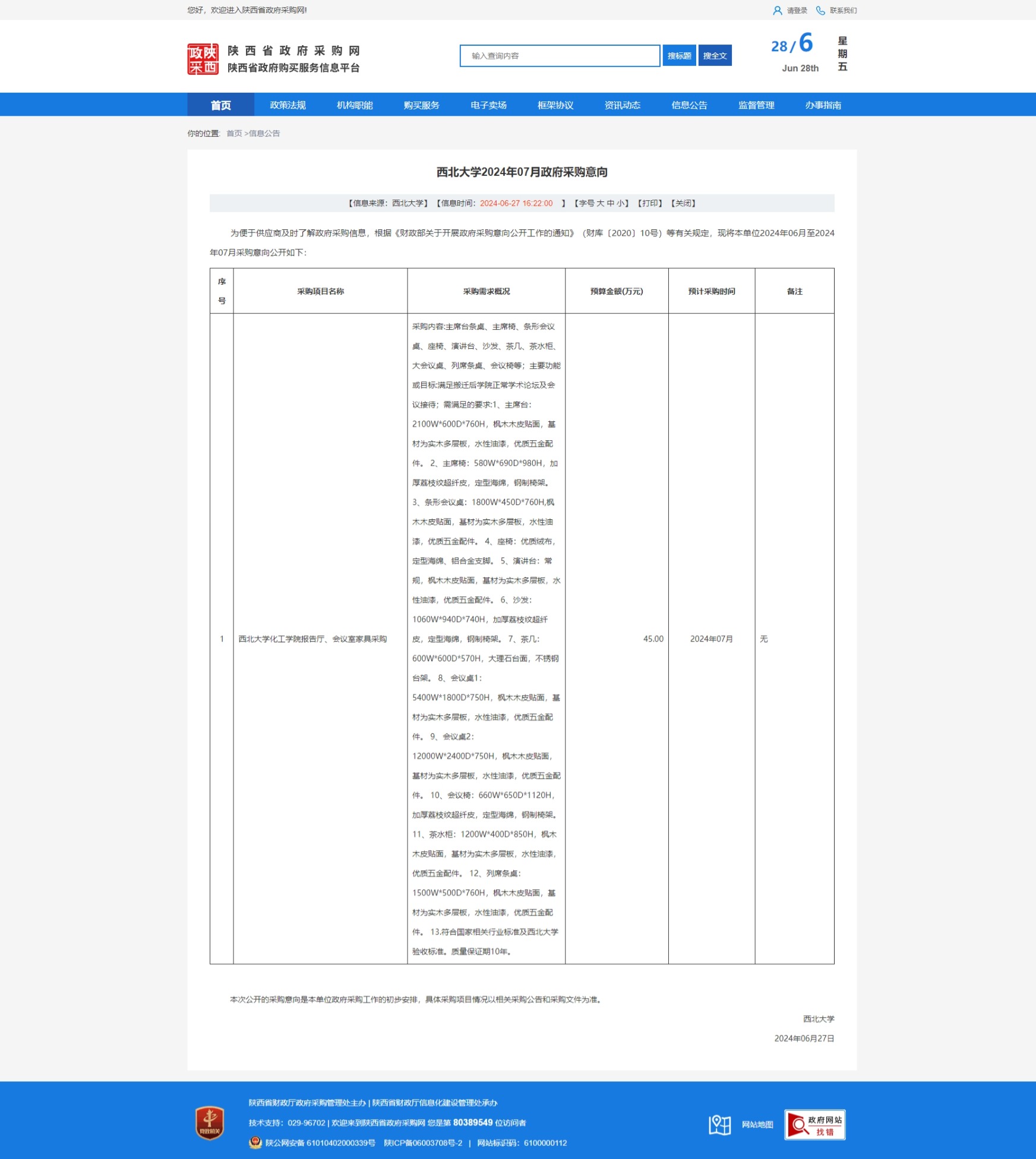 星空app官网2024年07月政府采购意向 作者: 编辑:采购与招标办公室 时间:2024-06-28 原公告链接:https://www.ccgp-shaanxi.gov.cn/freecms/site/shaanxi/ggxx/info/2024/8a69c56f905696ce019058c8634c19ef.html?noticeType=59¬iceId=ff818b4c-3460-11ef-b8b6-08c0eb20c666
